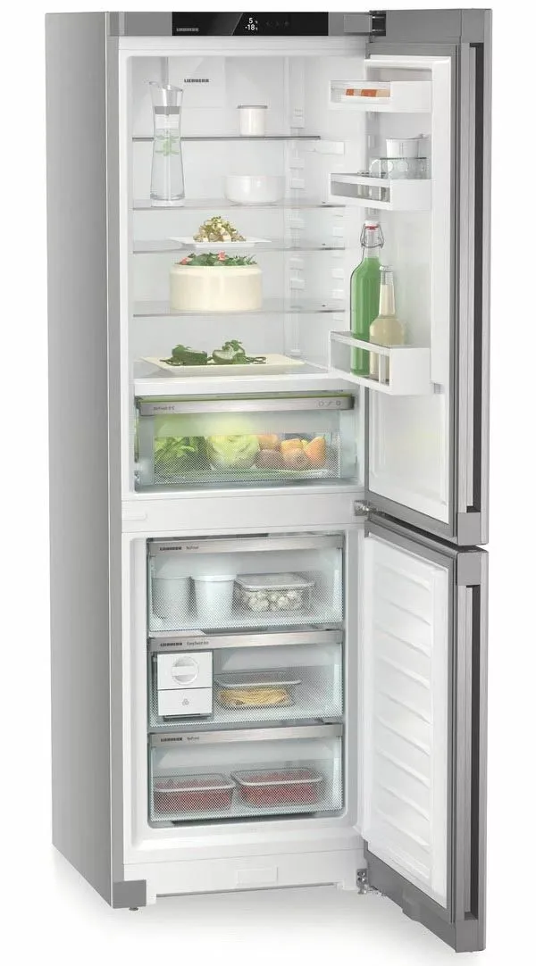 Двухкамерный холодильник Liebherr CBNsdc 522i-22 001 BioFresh NoFrost создан для требовательных пользователей, которым важны свежесть продуктов, удобство и современный дизайн. Корпус «серебристый с покрытием SmartSteel/серебристый» с горизонтальной шлифовкой и утопленной ручкой подчёркивает минималистичную эстетику и практичность поверхности. Управление реализовано через сенсорный экран с наглядным отображением температур и функций.