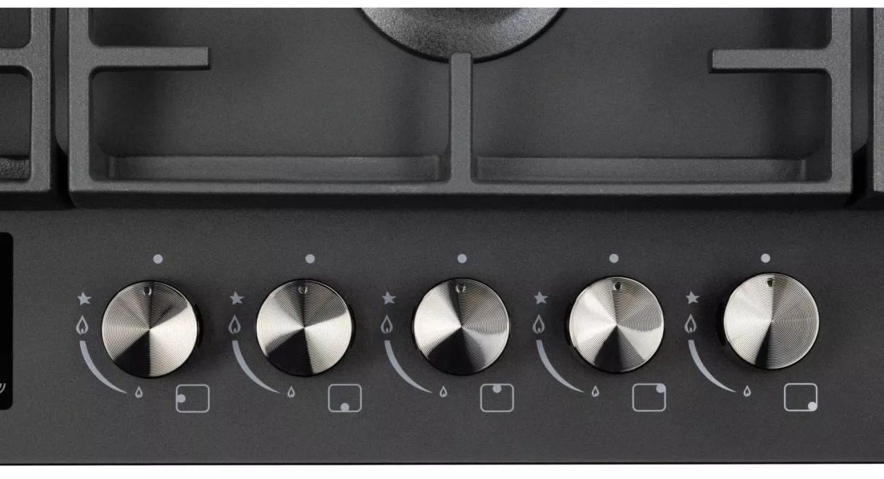 Конфорки различаются по диаметру и мощности: наиболее производительная WOK конфорка 3,4 кВт с тройным рядом пламени обеспечивает усиленный жар для быстрого и равномерного прогрева дна и стенок посуды. Автоподжиг упрощает запуск одной рукой, а усиленные чугунные решетки надежно удерживают тяжелую посуду. В комплект входит сменный набор металлических ручек. Гарантия на варочную панель HIBERG — 2 года.