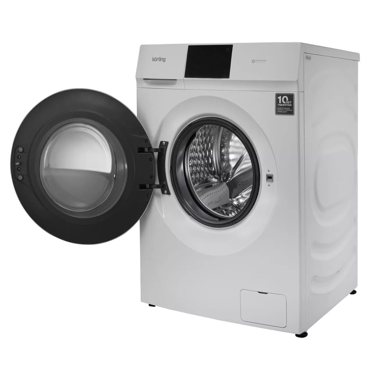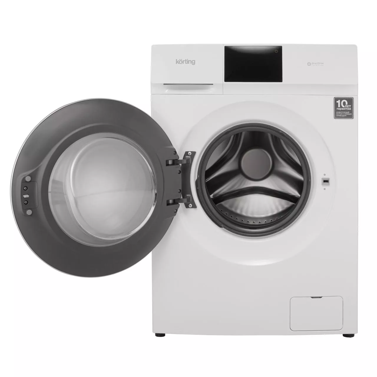 Инверторный мотор с прямым приводом гарантирует высокую производительность, тихую работу и долговечность. Система контроля пенообразования и баланса барабана обеспечивает стабильность и качество стирки. Для безопасности предусмотрена защитная крышка люка, которая исключает контакт с нагретым стеклом и предотвращает скопление пыли.