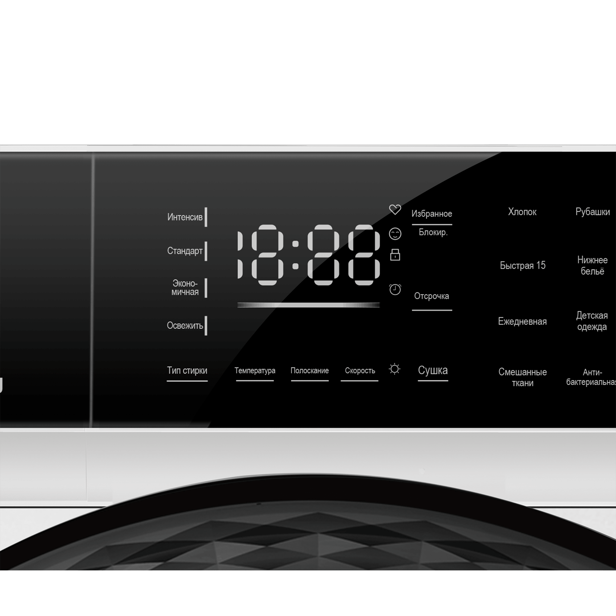Контроль скорости отжима    Есть, сенсорный