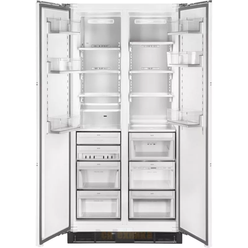 Инновационный встраиваемый холодильник HIBERG RFS 800 с инверторным компрессором, электронным управлением и системой охлаждения Total No Frost — отличное решение для интерьера просторной кухни. Двухдверная модель Side-by-Side благодаря своему лаконичному дизайну и строгой геометрии добавит помещению стиля. Прибор высотой 199,6 см, шириной 96,2 см и глубиной 57,2 см легко встраивается в кухонную мебель, формируя цельное пространство. Широкий функционал холодильника и используемые технологии делают его уникальной техникой на российском рынке, а шикарный дизайн модели удовлетворит самые высокие эстетические запросы.
